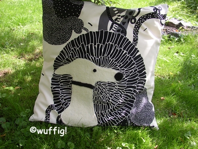 mal für Farbe sorgen mit einem neuen Kissen: Handgearbeitete Einzelstücke aus Baumwollstoff mit gefilztem Hundefreund/in... Größe dieser beiden : 50 x 50 cm.