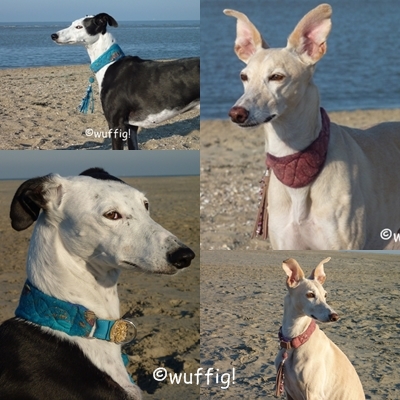 Whippets in Aktion! der Hund von heute trägt ein Original "wuffig" um den Hals!